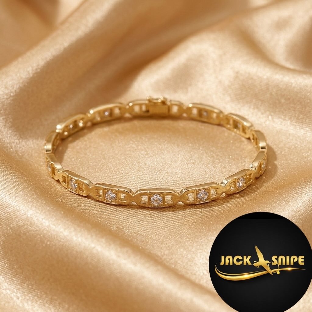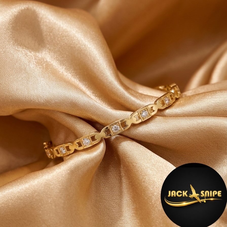 Add dazzling elegance to your jewelry collection with the Gold Plated Stainless Steel Anti-Tarnish Studded Rhinestone Bangle. Crafted from premium stainless steel and finished with luxurious gold plating, this bangle is beautifully studded with sparkling rhinestones that create a glamorous, eye-catching look. The anti-tarnish coating ensures long-lasting shine, while the smooth, skin-friendly design provides comfortable wear throughout the day. Perfect for parties, festive occasions, or elevating everyday outfits, this bangle is a stunning statement piece and an ideal gifting choice.